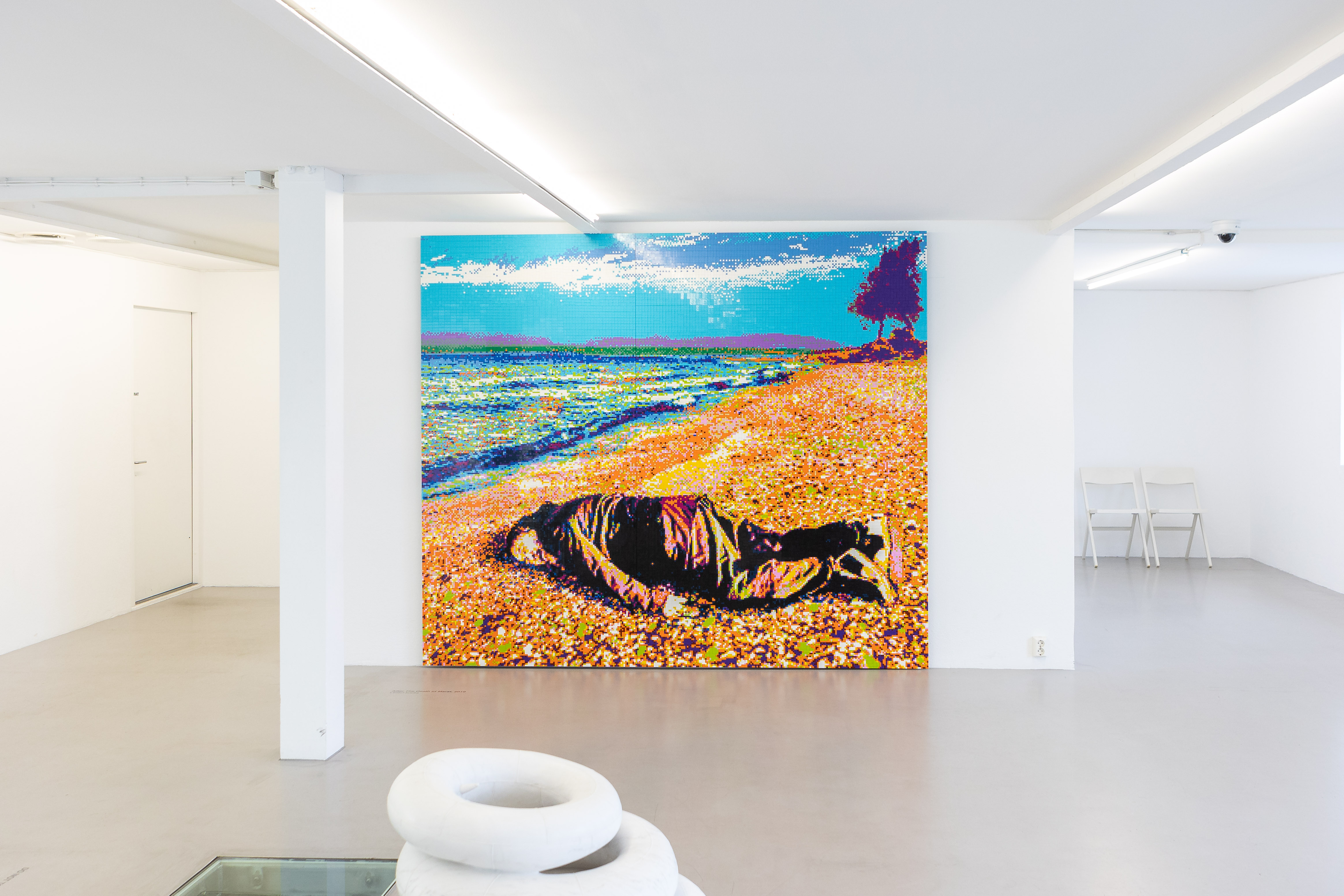LEGO-DØD I dette Lego-kunstverket gjenskaper AI Weiwei, med seg selv som motiv, fotografiet av en død, syrisk flyktningegutt på en strand i Tyrkia.
