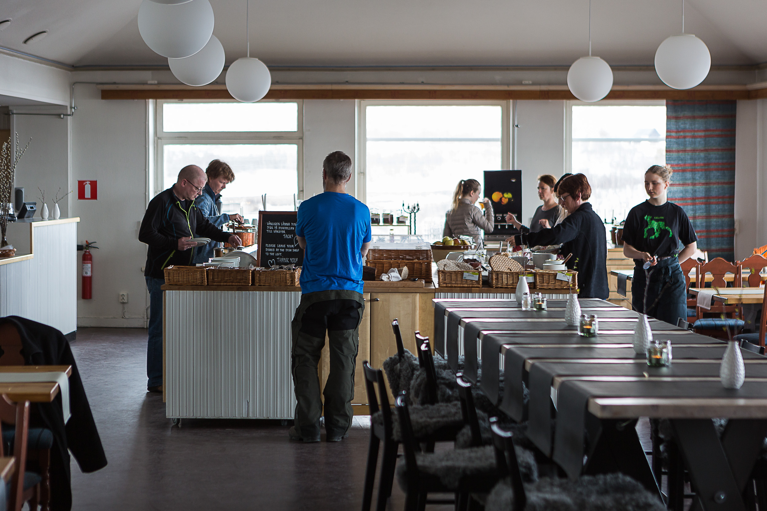 – Vi ønsker at våre gjester skal kunne bli mette etter en lang dag ute på vandring. Samtidig skal det ikke være for stivt. Du skal ikke være nødt til å kle deg om for å komme i inn i Restaurant Kungsleden, forteller kjøkkensjef Paula Cederlöf. Stockholmsjenta kom til Abisko for første gang i 2005, og siden 2009 har hun hatt ansvaret for gryter og kar på kjøkkenet på turiststasjonen. Sammen med sine medkokker og serveringspersonale sørger hun for at gjestene kan spise seg gode og mette uten at det svir for mye i lommeboka. En treretters middag koster 375 svenske kroner. Velger du kun hovedretten, slipper du unna med 225 kroner, uansett om det er fisk eller vilt på menyen.