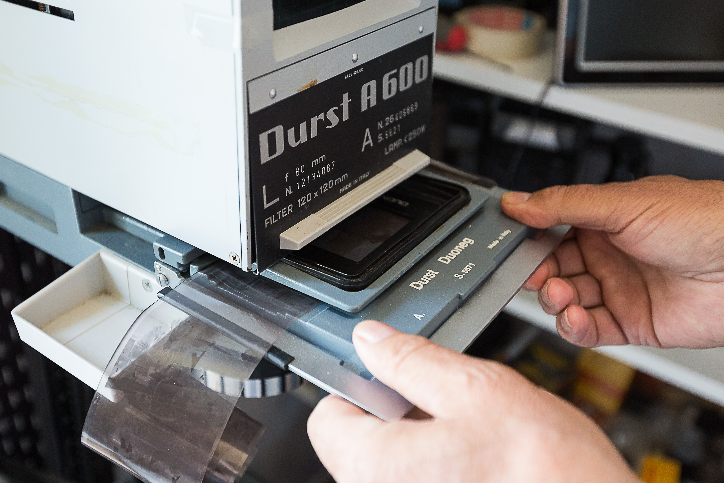 – Se her, sier Jostein og viser fram et stort monster av et forstørrelsesapparat som står like ved inngangsdøra. – Dette har, etter hva jeg er blitt fortalt, stått i Harstad Tidendes redaksjon. Han finner fram en rull ferdig eksponert film, plasserer strimmelen i holderen og demonstrerer hvordan fortidas avisfotografer måtte gå fram for å lage forstørrelser. Ved siden av henger en gammel elektronblitz, brukt av HTs tidligere fotograf John Berthung.