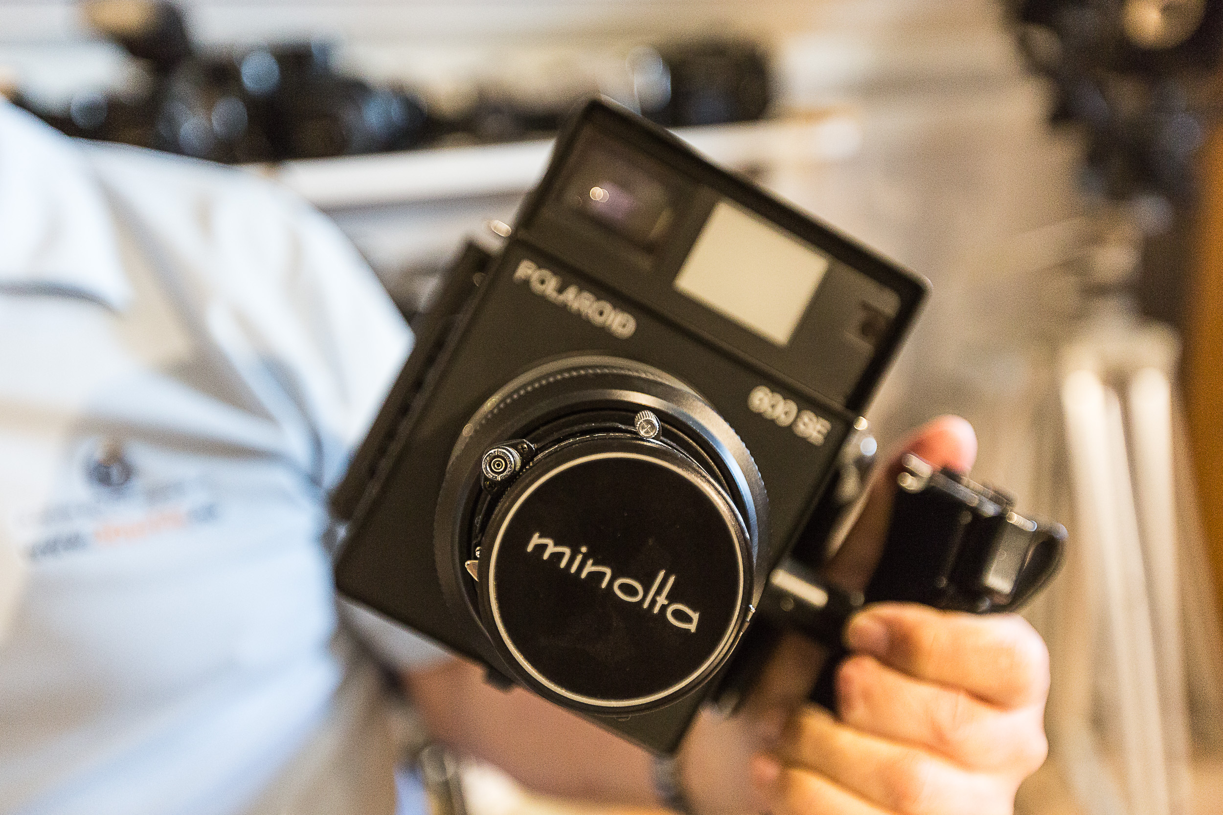 – Det hang en pose på døra mi en dag. I den lå dette avanserte polaroidkameraet med utskiftbar optikk, forteller han og viser fram et apparat på størrelse med en kilospose havregryn. Sammen med apparatet lå fakturaen som viste hva apparatet hadde kostet. I tillegg lå det en lapp som fortalte at kameraet var blitt brukt til å ta bilbilder hos Arne Johnsen.