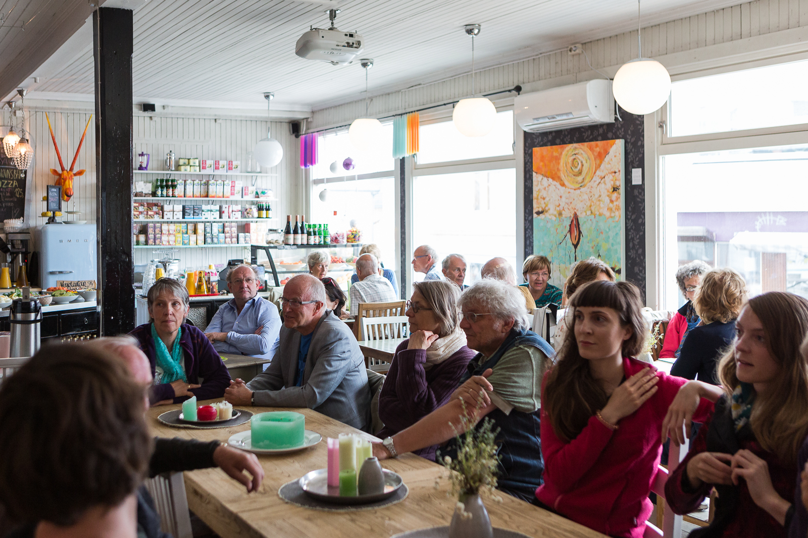 Kvart over åtte onsdag 8.juli, lenge før turisthordene fylte gatene og nesten en time før maten ble satt på bordet, var de første gjestene på plass. Kampen om å få de beste plassene har nok noe å si, men i den sjarmerende atmosfæren i kafeen er det ikke spesielt vanskelig å finne roen i før dagen starter. Like før ni var kafeen full av gjester sultne på både mat og musikk.