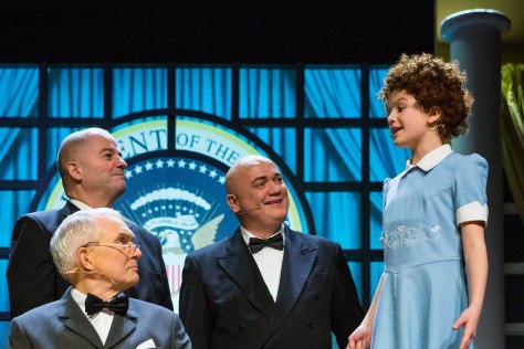 La det være sagt med en gang; jeg hadde absolutt ingen grunn til å være skeptisk til det Teaterklubb’81 serverte sitt publikum. Annie åpner med en scene fra barnehjemmet hvor et dusin jenter synger og danser. De lokale jentene stirret fryktløst ut i salen, så tvers gjennom begeistrede foreldre, tanter og onkler, og de lekte definitivt ikke teater. Hovedrolleinnehaveren var 10, sang klokkerent og spilte som om vi var i New York. Jeg kjente at ørene stoppet smilet mitt fra å gå rundt hele hodet. De unge skuespillerne fylte ikke bare barnerollene, de tolket også flesteparten av de voksne. Kun tre menn i sin beste alder fikk skinne i rampelyset, i tillegg til hun som imponerte som Karius i sommer, Mette Spjelkavik Enoksen. Den 20 år gamle andværingen var med og vant Hedda-pris tidligere i år for sin innsats i Hålogaland Teaters oppsetning «Den sommeren pappa ble homo». Denne kvelden vaklet hun rundt på høye hæler mens hun holdt de stakkars barna stramt under sine alkoholbefengte vinger, akkurat så overbevisende som du forventer det på langt større scener enn dette.